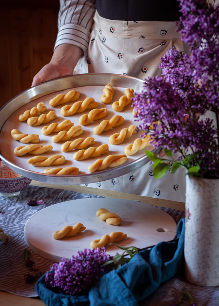 7.Then you put everything in the bowl with the flour and you knead with hands gently until all ingredients are well incorporated into a fine, buttery dough. Don’t over knead the dough because it can harden.