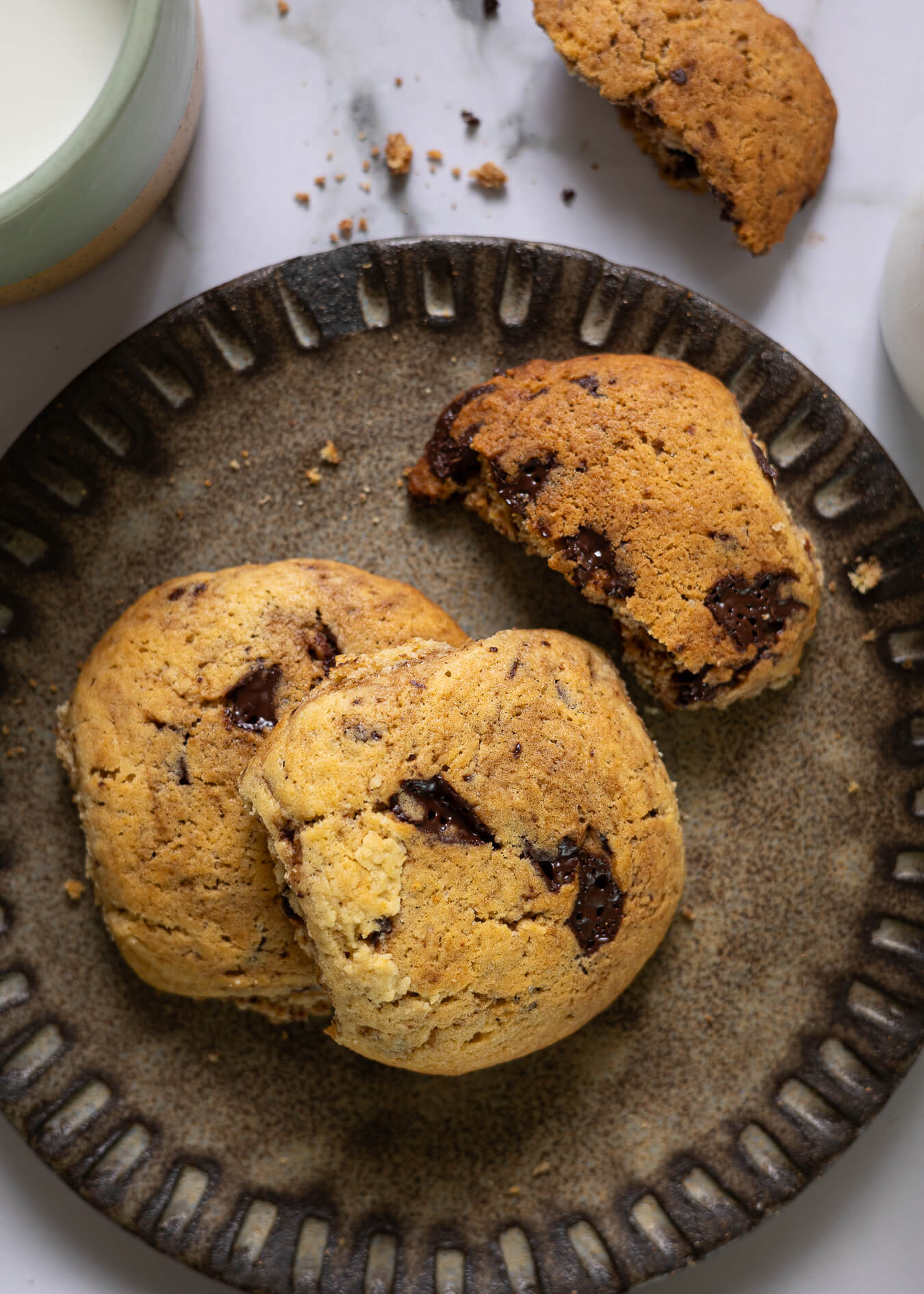 - Καστανή ζάχαρη: Δίνει υγρασία και πιο καραμελένια γεύση στα μπισκότα.
