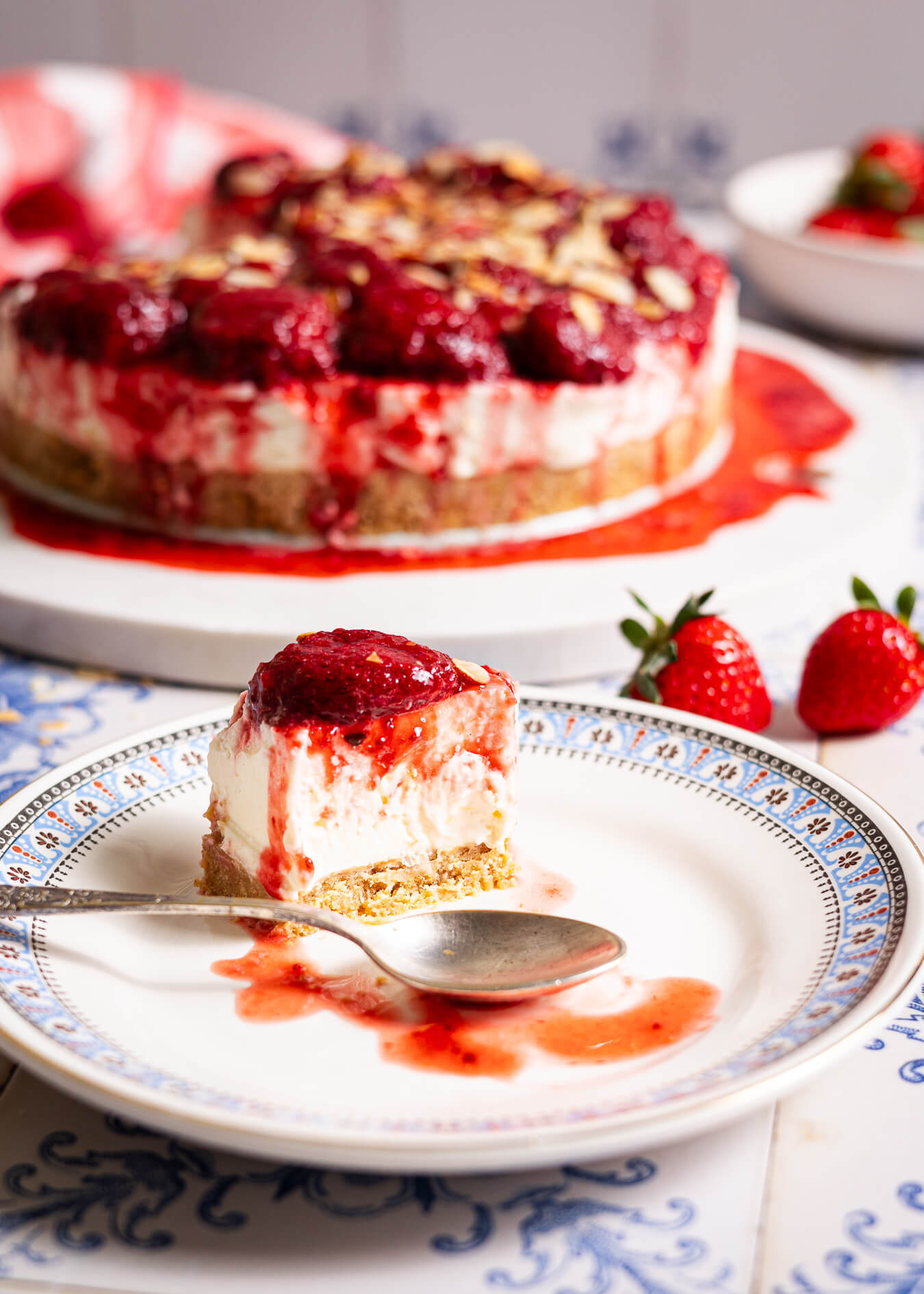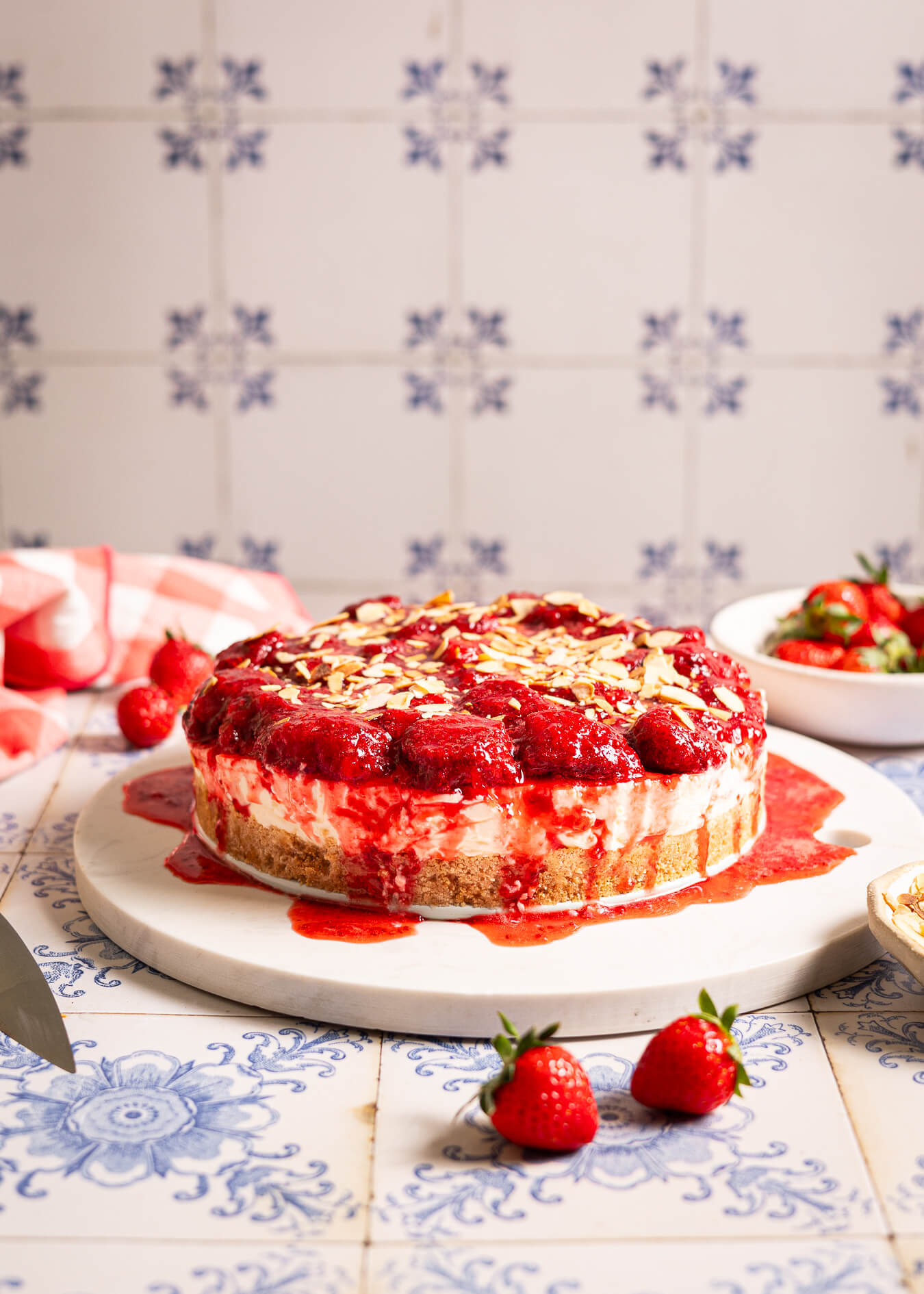 Το τσίζκεϊκ φράουλας είναι ένα κλασικό γλυκό που συνδυάζει την απαλή, βελούδινη κρέμα τυριού με τη γλυκόξινη φρουτώδη γεύση της φράουλας και την τραγανή βάση μπισκότου. Είναι ιδανικό για καλοκαιρινές στιγμές, γιορτές ή απλά για μια απόλαυση στο σπίτι. Η παρασκευή του δεν απαιτεί ψήσιμο της κρέμας, γι’ αυτό και είναι εύκολο και γρήγορο.
